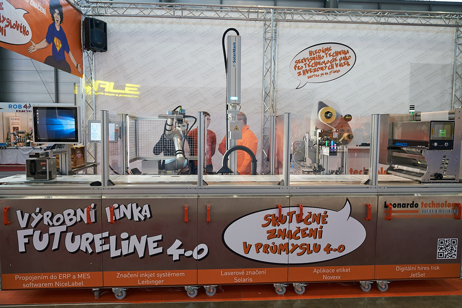 Veletrh Amper 2019 se nesl na vlnách výrobní linky FUTURELINE 4.0, na které se provádělo reálné značení v Průmyslu 4.0 ve spolupráci s kolaborativním robotem. Na výrobní lince FUTURELINE 4.0 byla k vidění komplementární spolupráce digitálního HiRes tisku, laseru s bending modulem a optikou 350x350 mm, kolaborativního robota s inkjetem a verifikací tisku s vyřazováním špatných dílů, aplikátorem etiket a s propojením do ERP a MES systému řízení výroby softwarem NiceLabel 2019. Ostatní o tom jen mluví, ale u Leonarda máte skutečné značení v Průmyslu 4.0.
