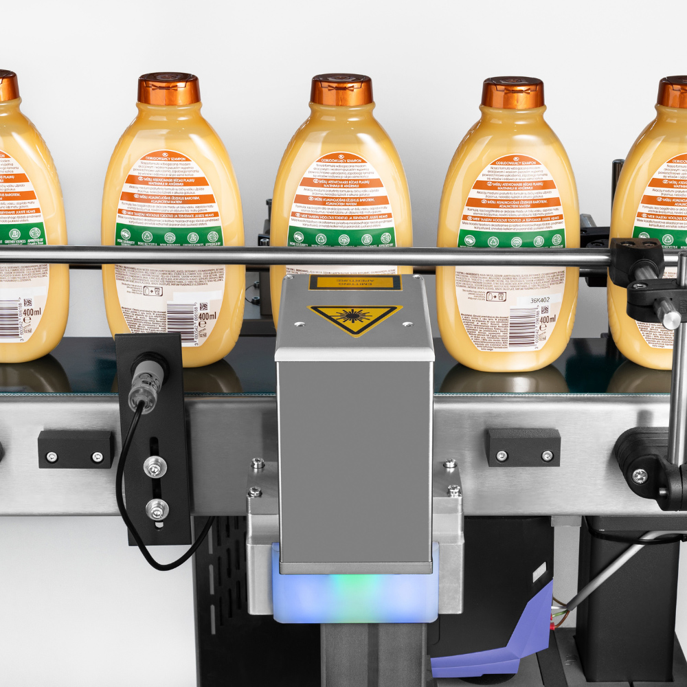 Laser vytváří vysoce kvalitní, odolné a trvalé kódy, které zůstávají čisté a čitelné na fóliích, plastových dílech, kovech i dalších materiálech. Využívá jedinečnou metodu značení a speciální algoritmy, díky nimž je možné spolehlivě značit alfanumerické texty, data, časy, sériová čísla, čárové a 2D kódy i grafiku. Zařízení splňuje nejvyšší bezpečnostní standardy pro nouzové zastavení a propojovací obvody podle normy ISO 13849-1 / PLe.