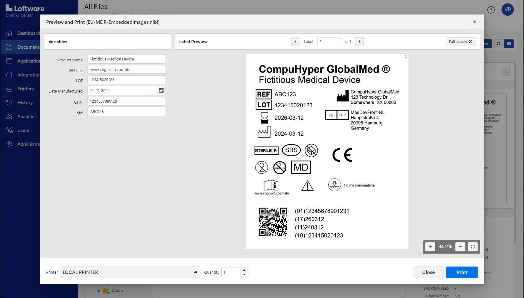 Platforma podporuje jak ruční tisk s uživatelsky přívětivým rozhraním, tak napojení na vaše aplikace a databáze. Díky tomu můžete minimalizovat chyby, zrychlit obsluhu a sjednotit vzhled i obsah etiket napříč celou organizací. Aktivní licenční centrum standardně ověřuje platnost online; pro odpojené linky je nově k dispozici i placená offline aktivace, takže lze provozovat tisk i v prostředích bez internetu.
